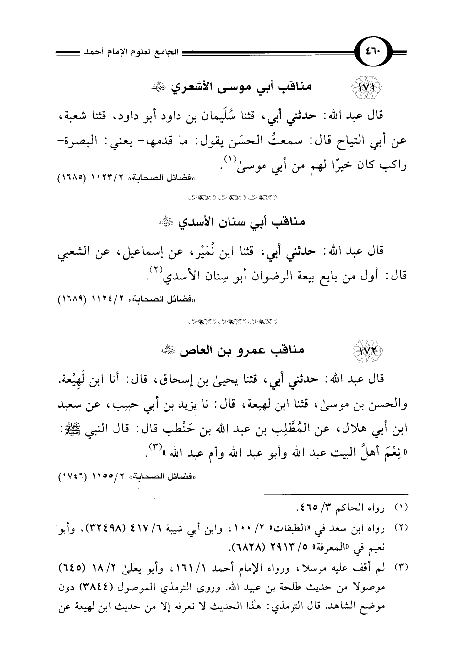 مناقب أبي سنان الأسدي -رضي اللَّه عنه-