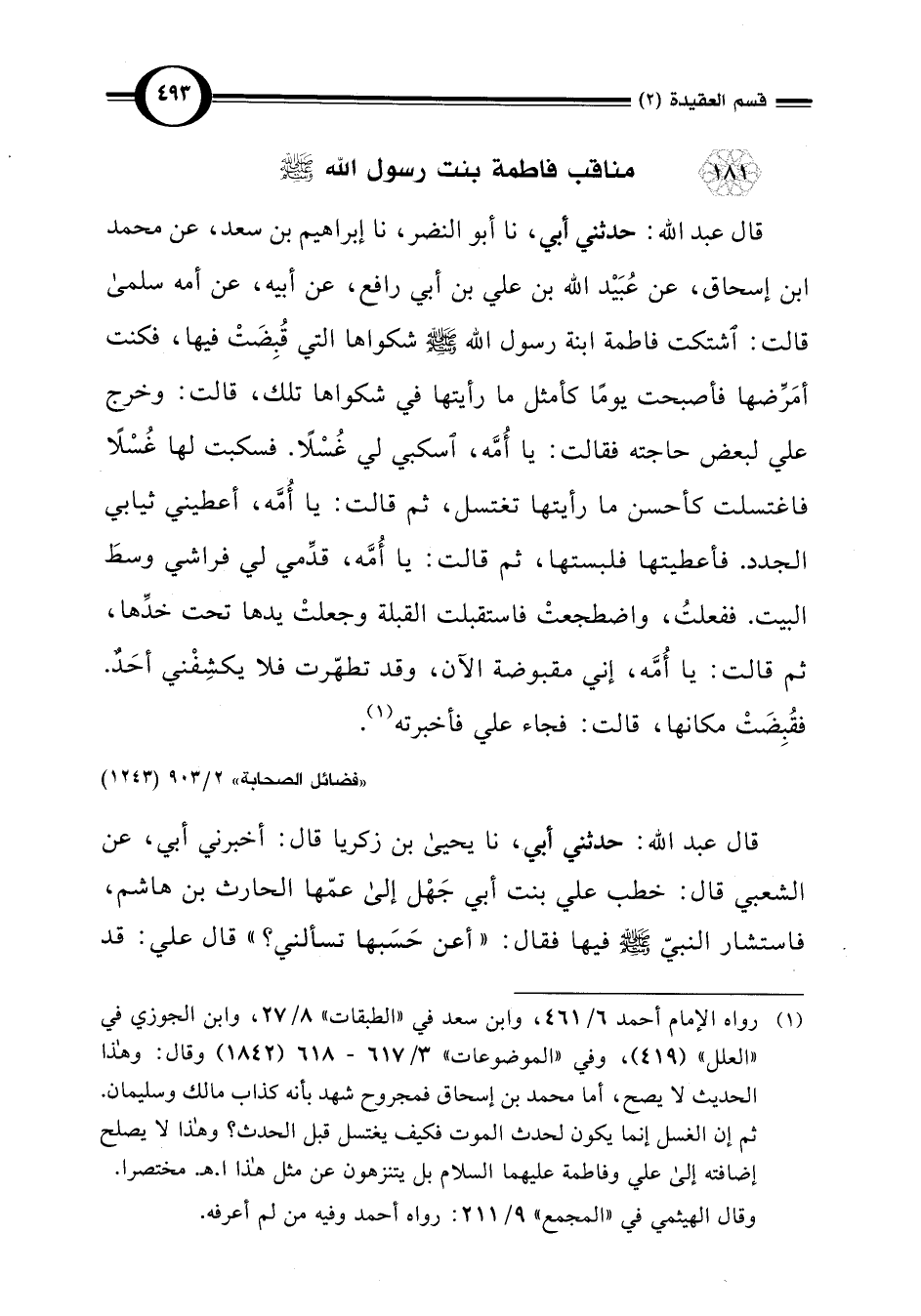 181 - مناقب فاطمة بنت رسول اللَّه -صلى اللَّه عليه وسلم-