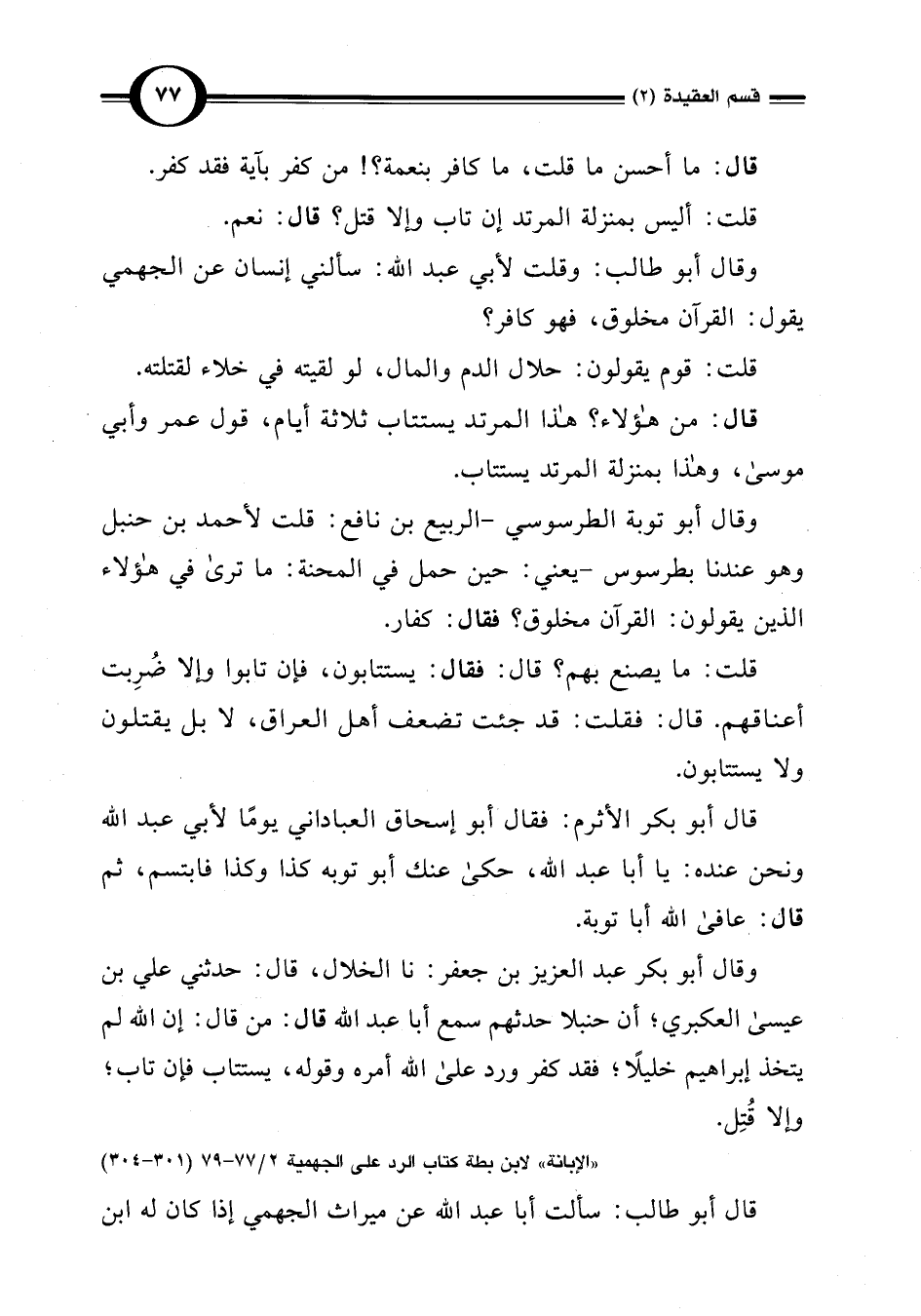 "الإبانة" لابن بطة كتاب الرد على الجهمية 2/ 77 - 79 (301 - 304)