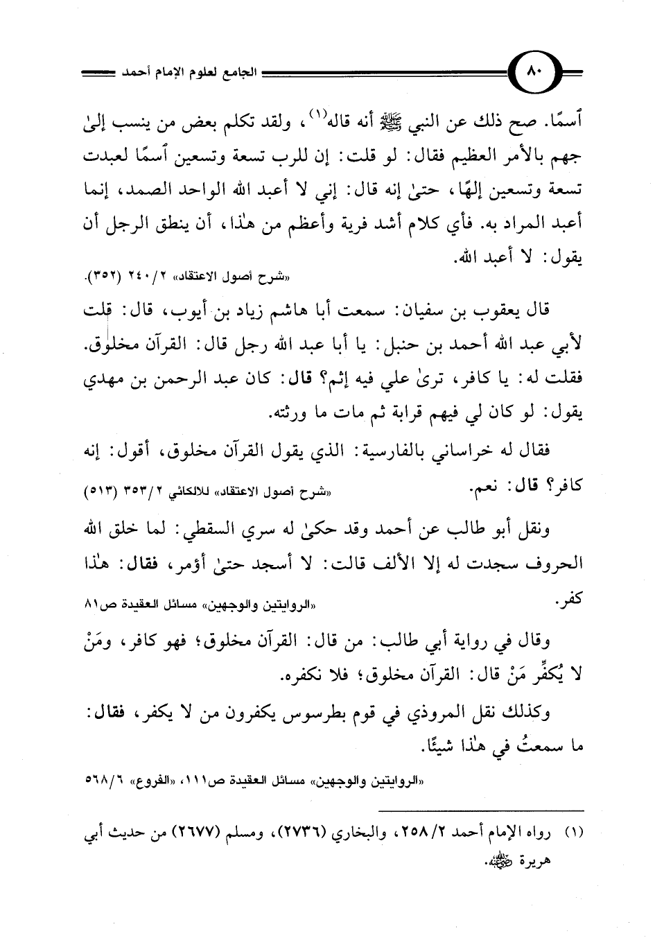 "الروايتين والوجهين" مسائل العقيدة ص 81
