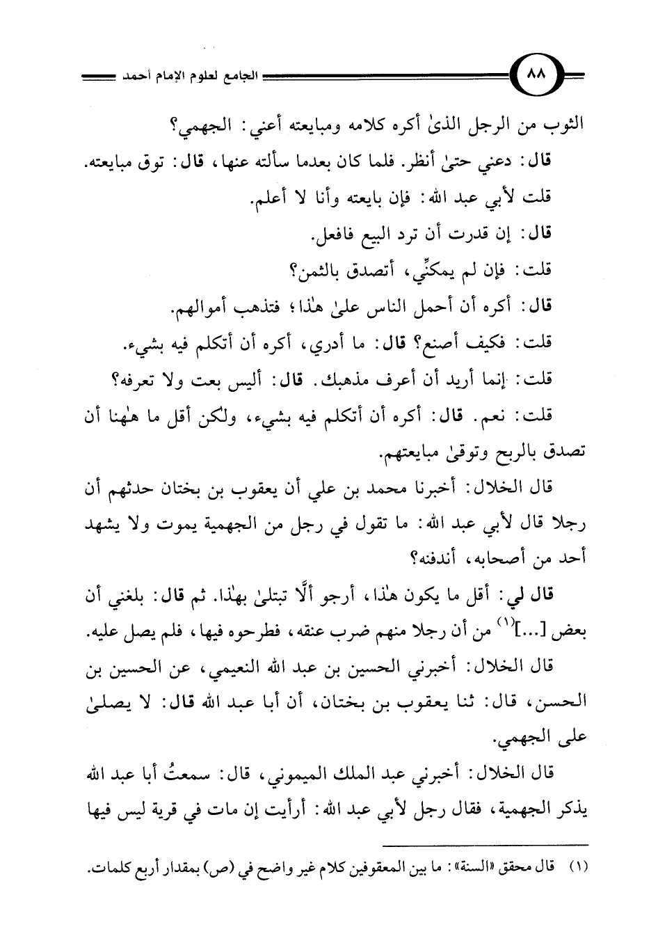 الثوب من الرجل الذى أكره كلامه ومبايعته أعني: الجهمي؟
