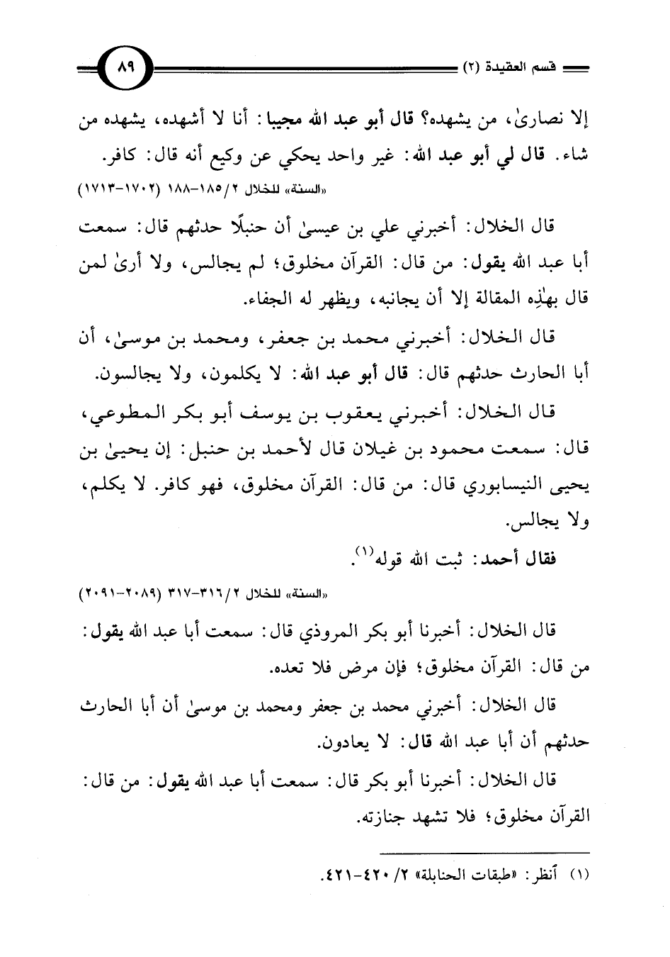 "السنة" للخلال 2/ 316 - 317 (2089 - 2091)