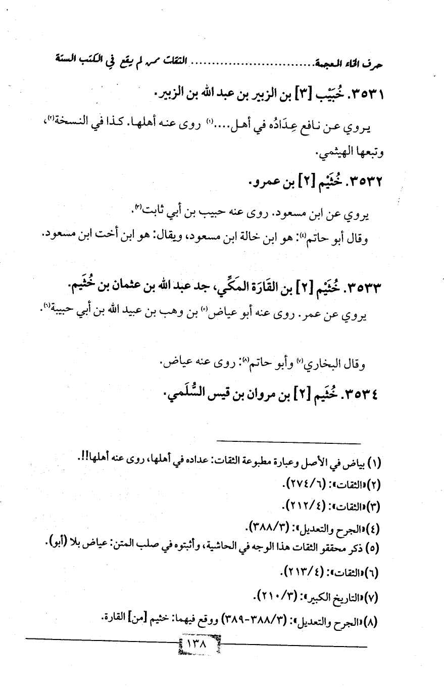 (¬8) «الجرح والتعديل»: (3/ 388 - 389) ووقع فيهما: خثيم [من] القارة.