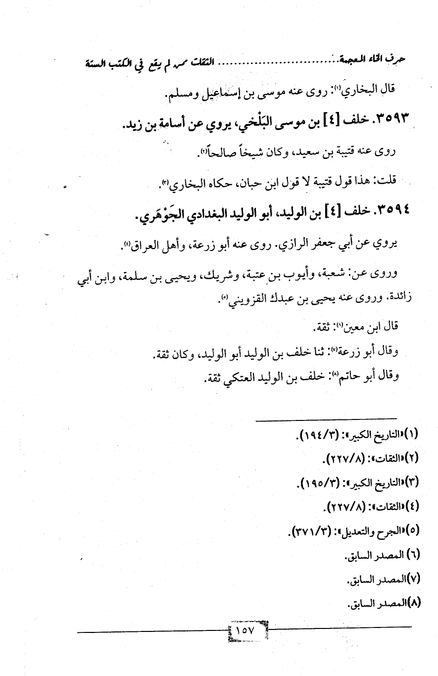 3593 - خلف [4] بن موسى البَلْخي، يروي عن أسامة بن زيد.