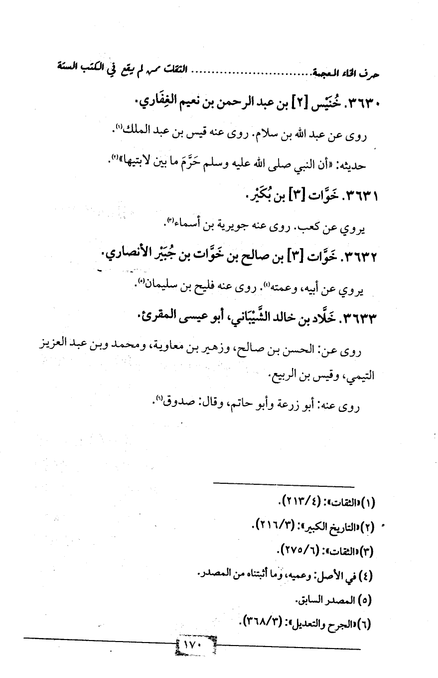 3630 - خُنَيْس [2] بن عبد الرحمن بن نعيم الغِفَاري.