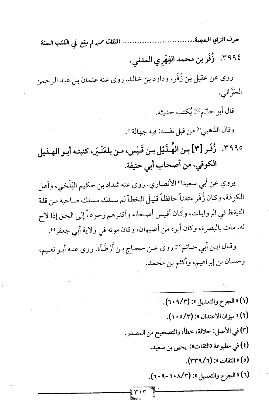 3995 - زُفَر [3] بن الهُذَيْل بن قَيْس، من بلعَنْبَر، كنيته أبو الهذيل الكوفي، من أصحاب أبي حنيفة.