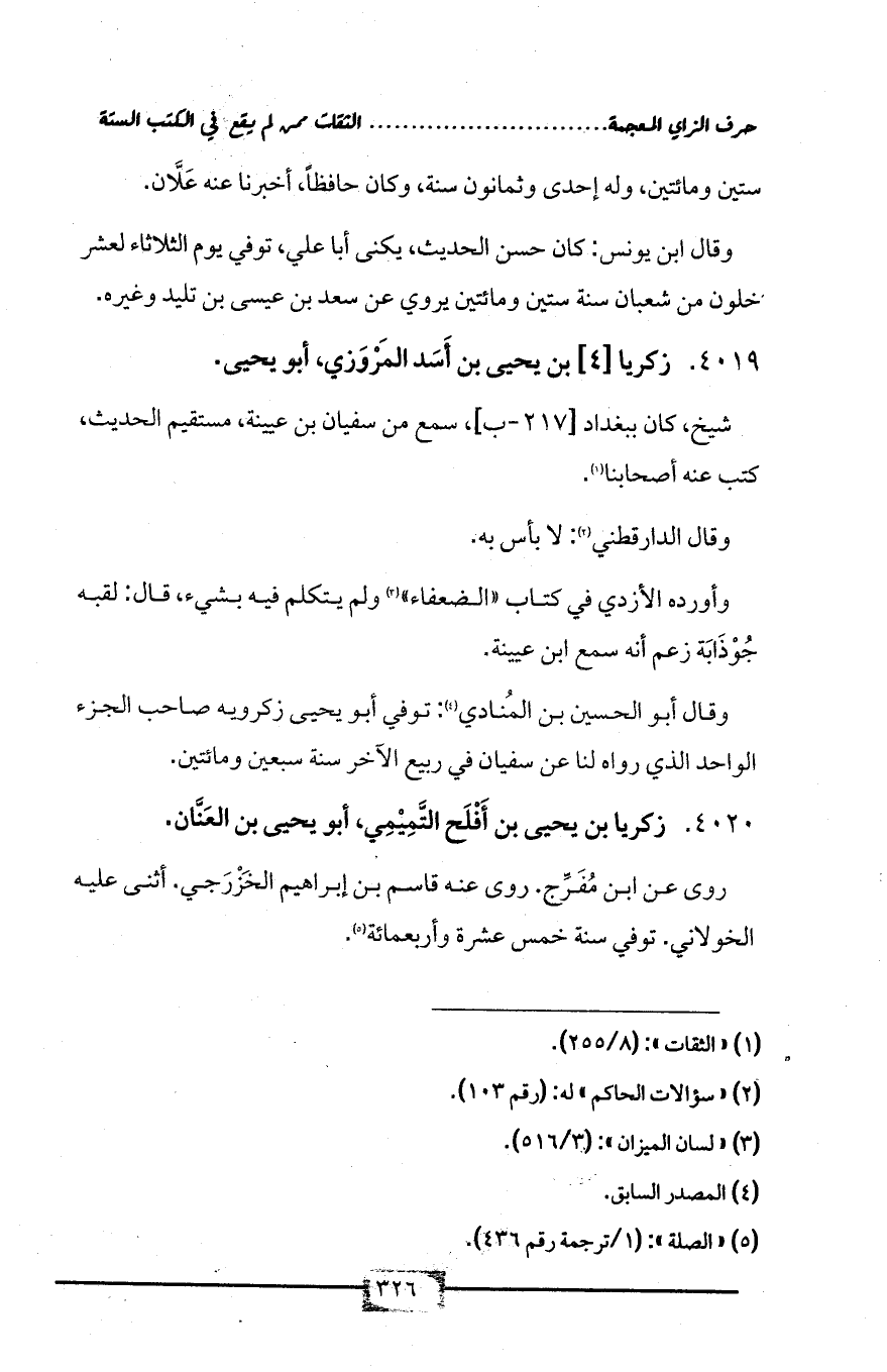 4020 - زكريا بن يحيى بن أَفْلَح التَّمِيْمِي، أبو يحيى بن العَنَّان.