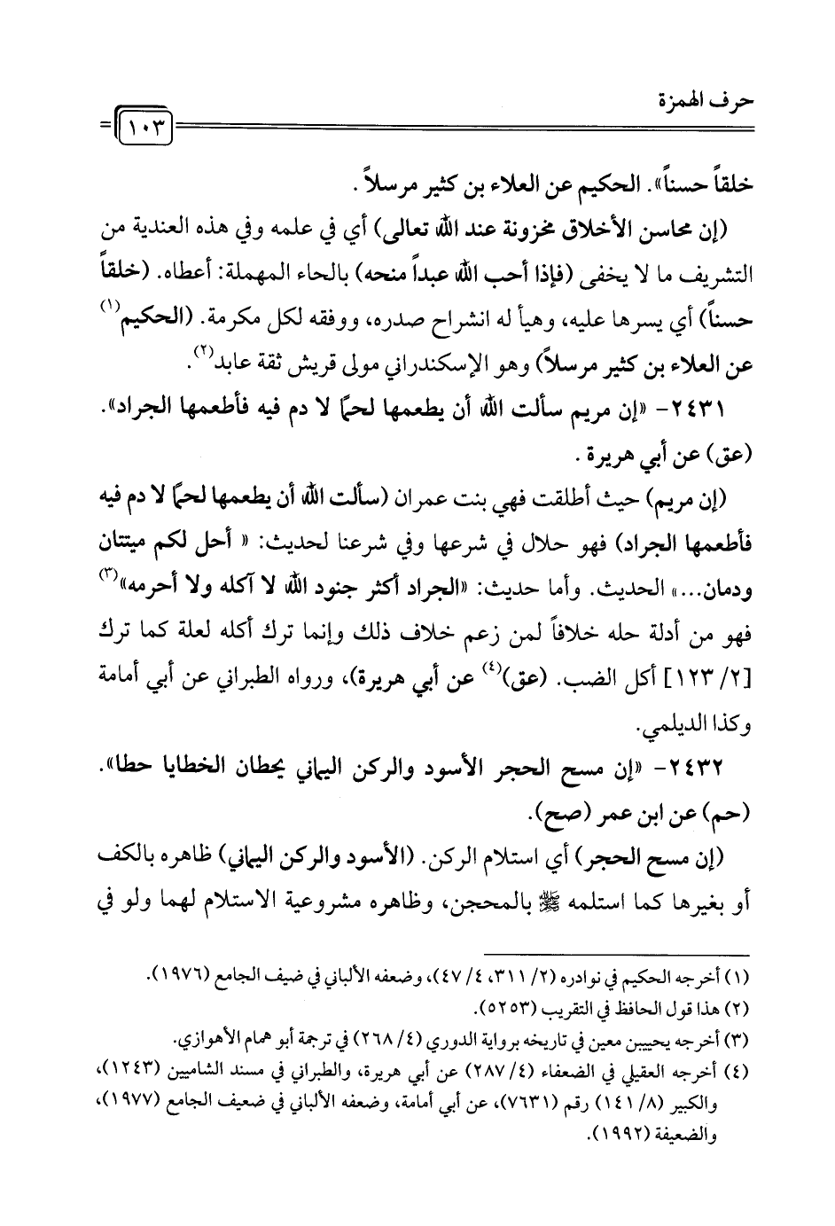2431 - "إن مريم سألت الله أن يطعمها لحمًا لا دم فيه فأطعمها الجراد". (عق) عن أبي هريرة.