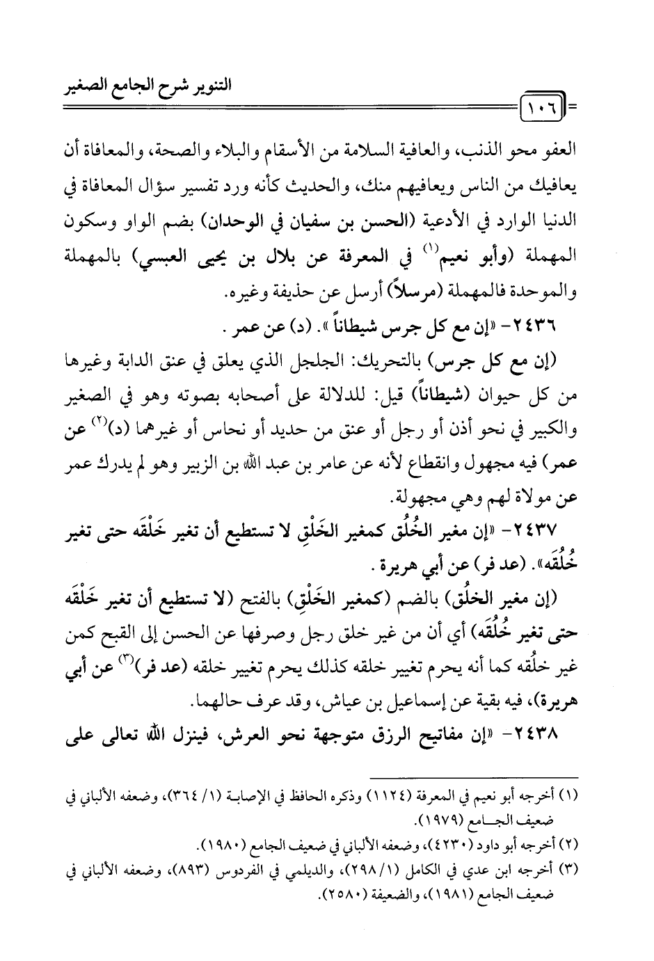 2437 - "إن مغير الخُلُق كمغير الخَلْقِ لا تستطيع أن تغير خَلْقَه حتى تغير خُلُقَه". (عد فر) عن أبي هريرة.