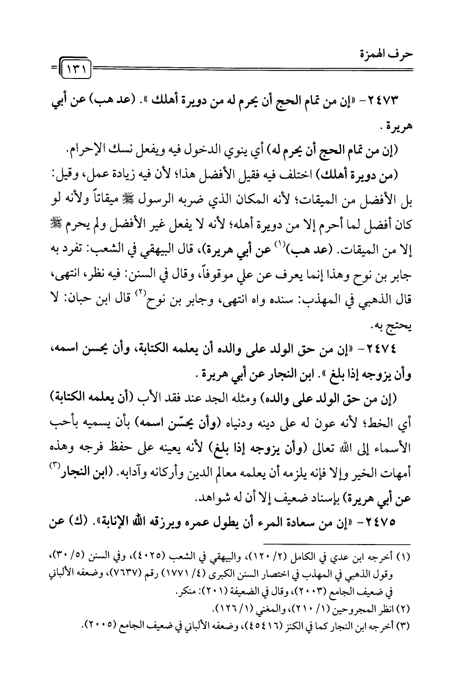 2473 - "إن من تمام الحج أن يحرم له من دويرة أهلك". (عد هب) عن أبي هريرة.