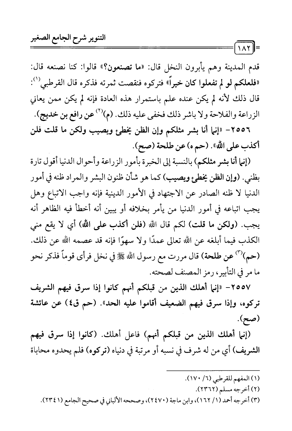 2557 - "إنما أهلك الذين من قبلكم أنهم كانوا إذا سرق فيهم الشريف تركوه, وإذا سرق فيهم الضعيف أقاموا عليه الحد". (حم ق 4) عن عائشة (صح).