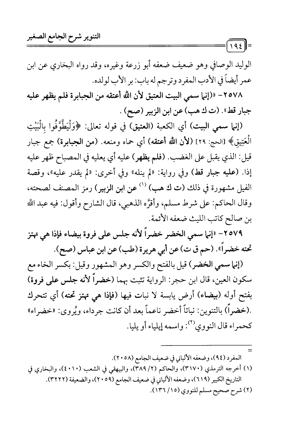2579 - "إنما سمي الخضر خضراً لأنه جلس على فروة بيضاء فإذا هى تهتز تحته خضراً". (حم ق ت) عن أبي هريرة (طب) عن ابن عباس (صح).