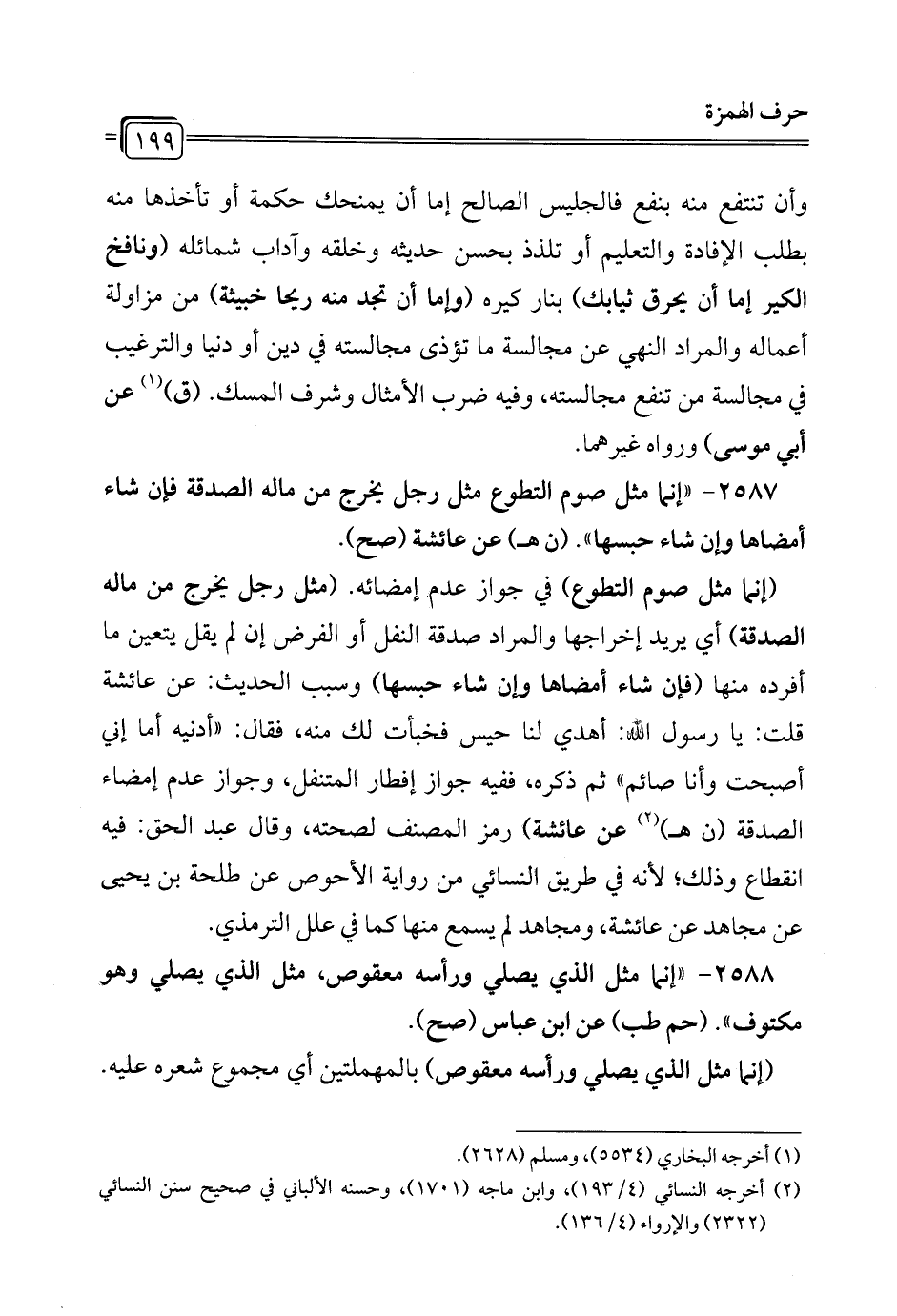 2587 - "إنما مثل صوم التطوع مثل رجل يخرج من ماله الصدقة فإن شاء أمضاها وإن شاء حبسها". (ن هـ) عن عائشة (صح).