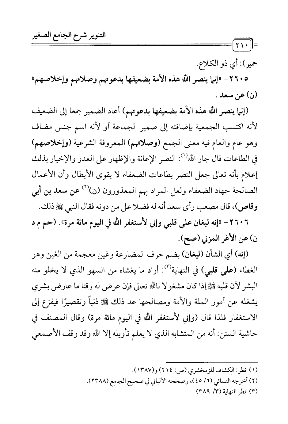 2606 - "إنه ليغان على قلبي وإني لأستغفر الله في اليوم مائة مرة". (حم م د ن) عن الأغر المزني (صح).