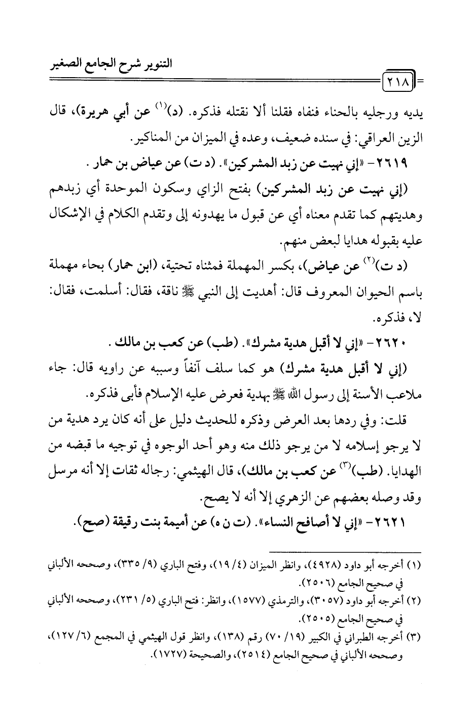 2620 - "إني لا أقبل هدية مشرك". (طب) عن كعب بن مالك.