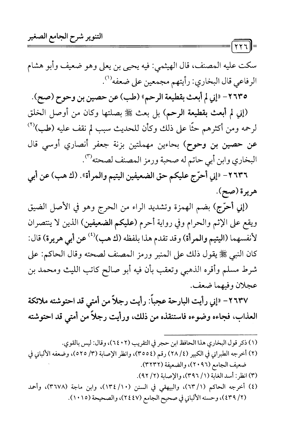 2636 - "إني أحرّج عليكم حق الضعيفين اليتيم والمرأة". (ك هب) عن أبي هريرة (صح).
