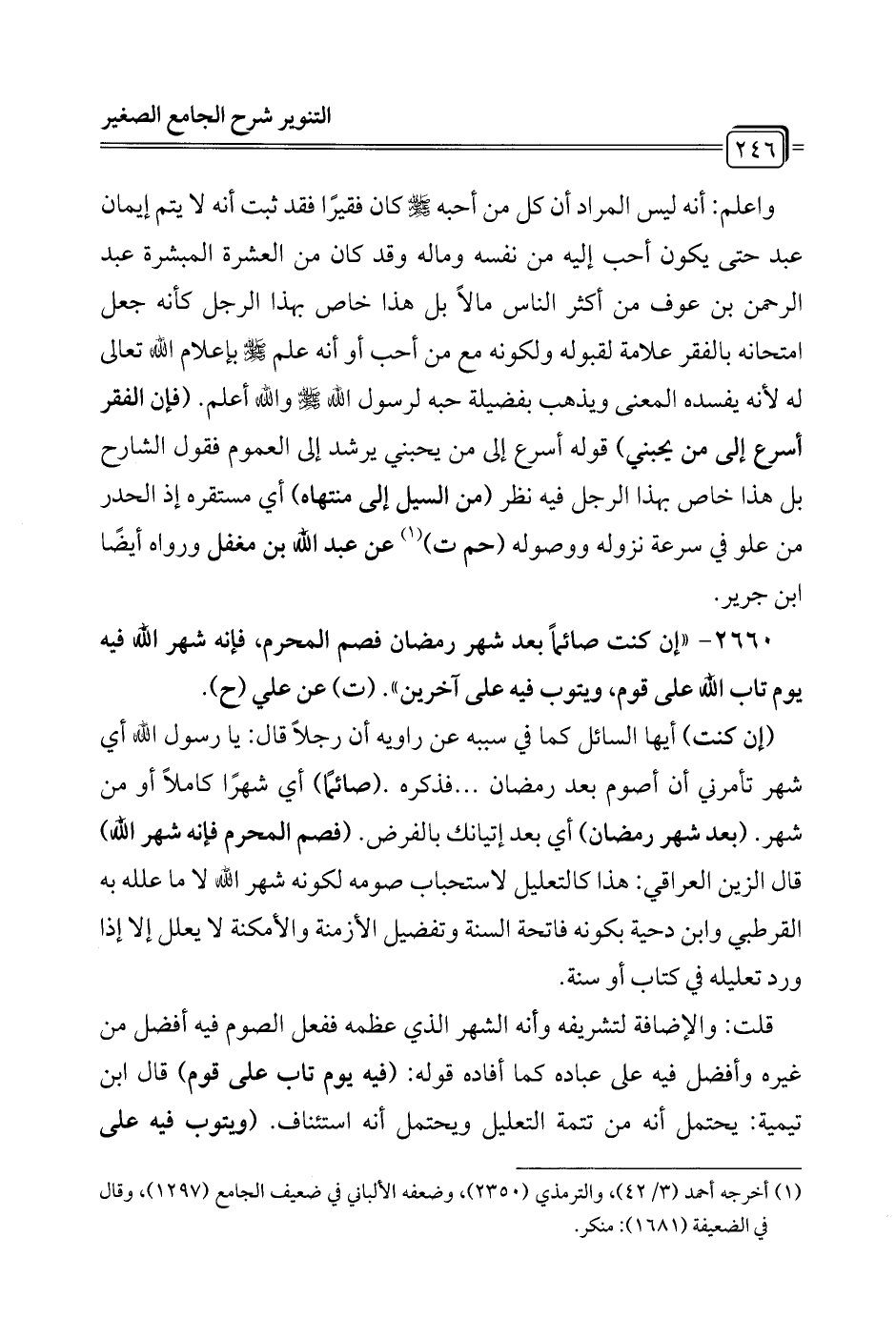 2660 - "إن كنت صائماً بعد شهر رمضان فصم المحرم، فإنه شهر الله فيه يوم تاب الله على قوم، ويتوب فيه على آخرين". (ت) عن علي (ح).