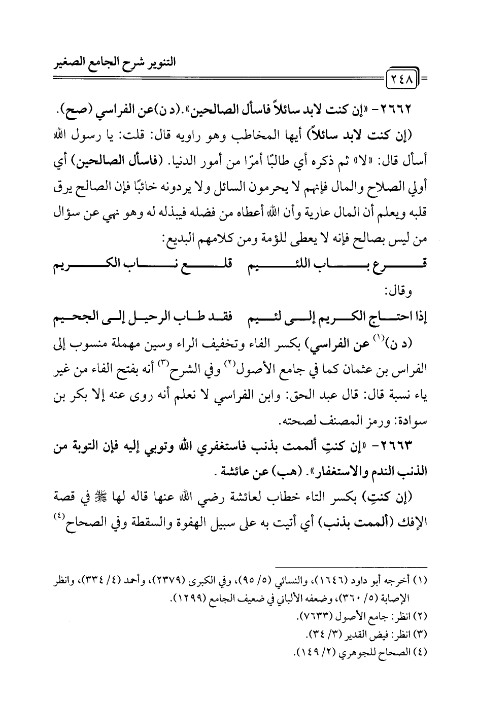 2662 - "إن كنت لا بد سائلاً فاسأل الصالحين". (د ن) عن الفراسي (صح).