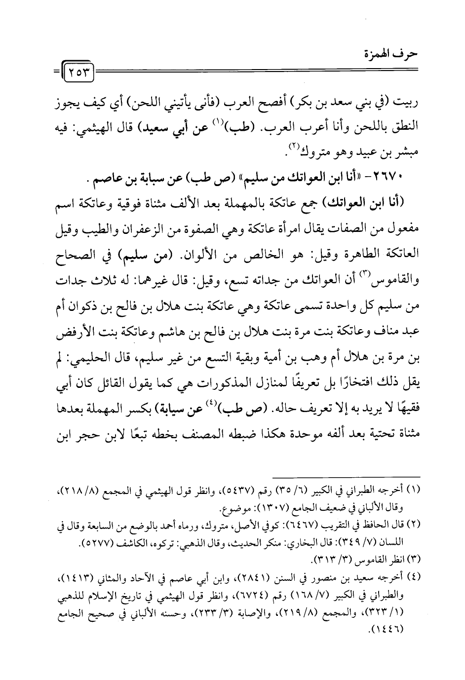 2670 - "أنا ابن العواتك من سليم" (ص طب) عن سبابة بن عاصم.