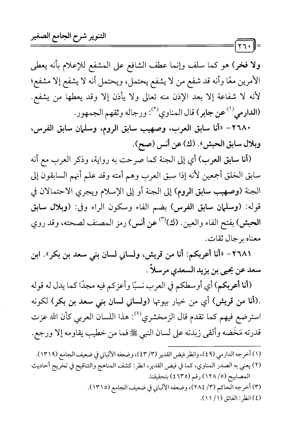 (أنا سابق العرب) أي إلى الجنة كما صرحت به رواية, وذكر العرب مع أنه سابق الخلق أجمعين لأنه إذا سبق العرب وهم أمته وقد علم أنهم السابقون إلى الجنة (وصهيب سابق الروم) إلى الجنة أو إلى الإِسلام ويجري الاحتمالان في قوله: (وسلمان سابق الفرس) بضم الفاء وسكون الراء وفي: (وبلال سابق الحبش) بفتح الفاء والعين. (ك) (¬3) عن أنس) رمز المصنف لصحته، وقد روي معناه برجال ثقات.