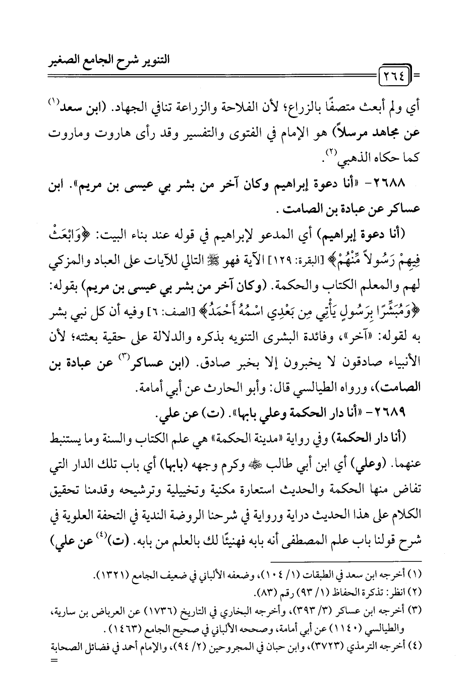 2688 - "أنا دعوة إبراهيم وكان آخر من بشر بي عيسى بن مريم". ابن عساكر عن عبادة بن الصامت.