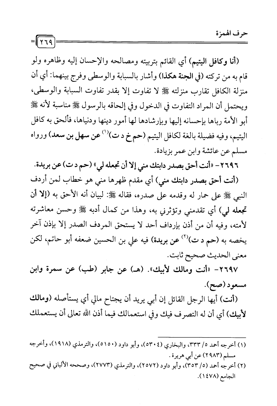 2696 - "أنت أحق بصدر دابتك مني إلا أن تجعله لي" (حم د ت) عن بريدة.