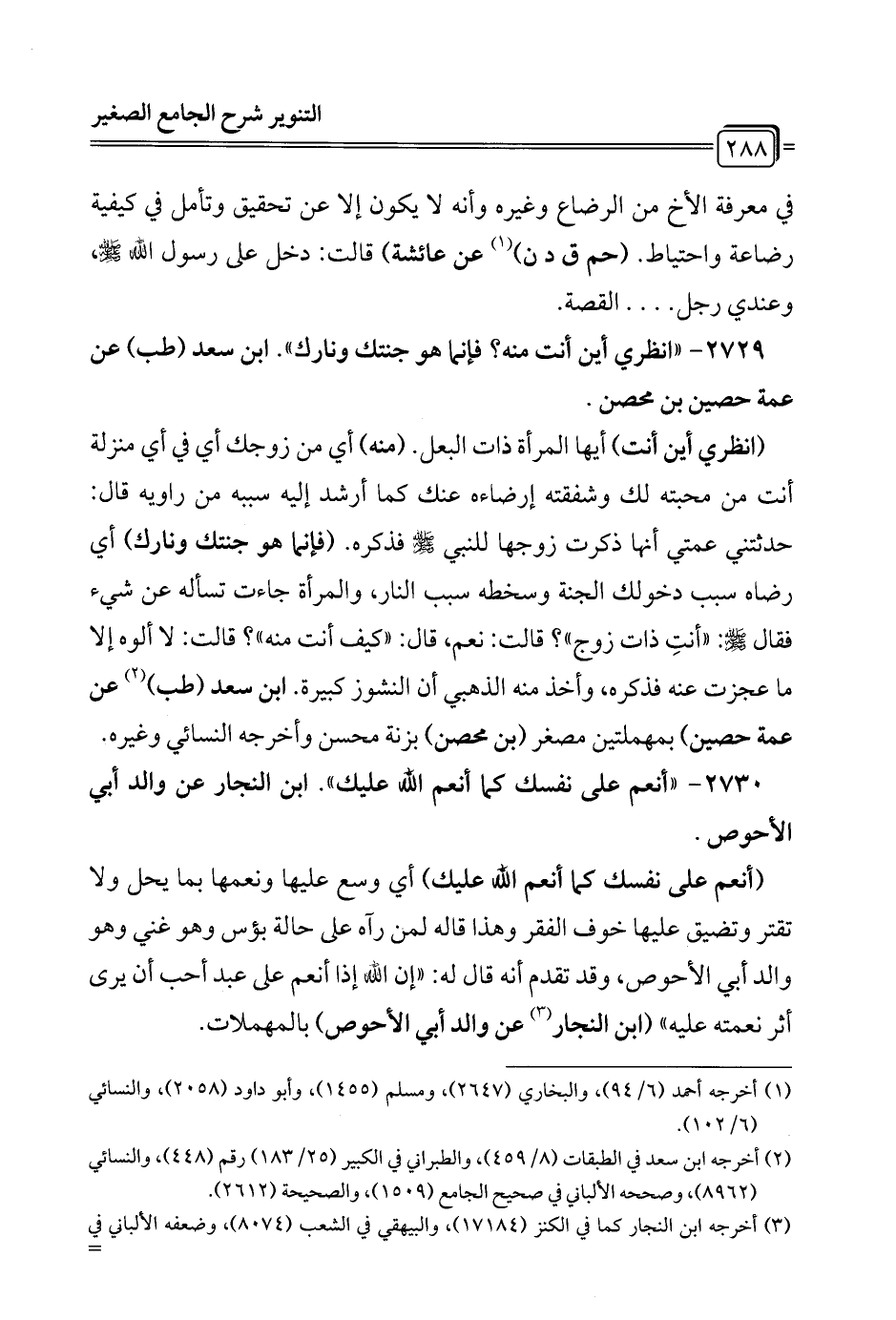 2729 - "انظري أين أنت منه؟ فإنما هو جنتك ونارك". ابن سعد (طب) عن عمة حصين بن محصن.