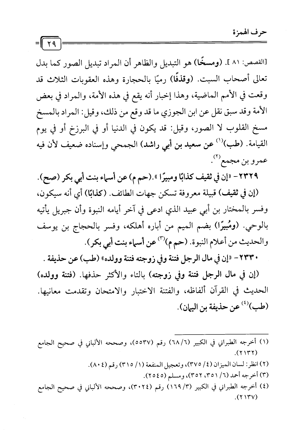2329 - "إن في ثقيف كذابًا ومبيرًا". (حم م) عن أسماء بنت أبي بكر (صح).