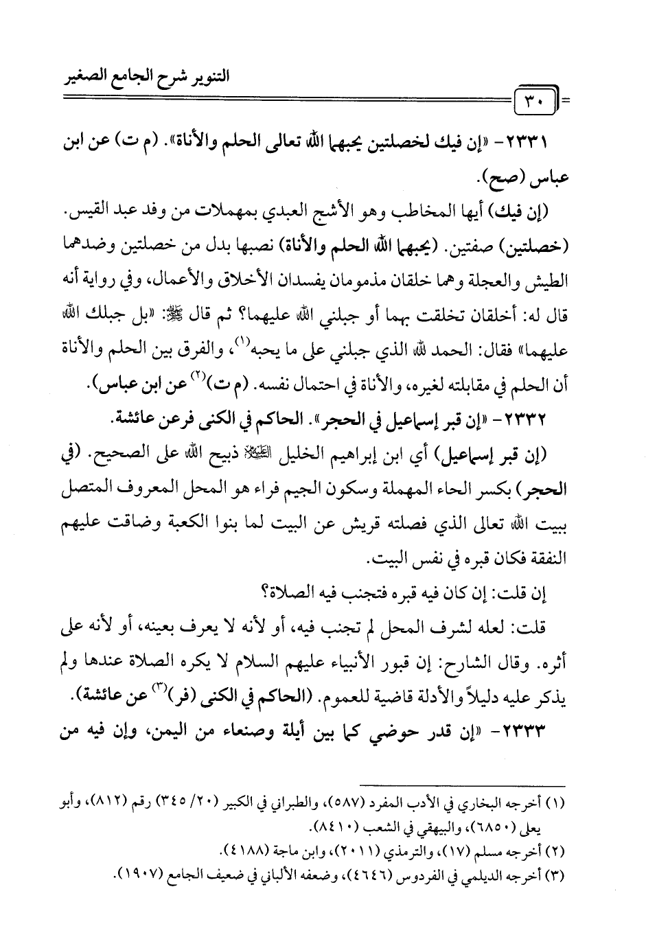 2331 - "إن فيك لخصلتين يحبهما الله تعالى الحلم والأناة". (م ت) عن ابن عباس (صح).