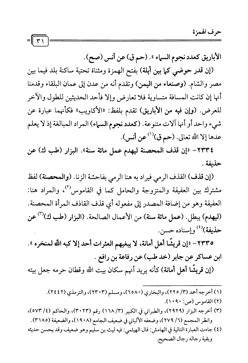 2334 - "إن قذف المحصنة ليهدم عمل مائة سنة". البزار (طب ك) عن حذيفة.