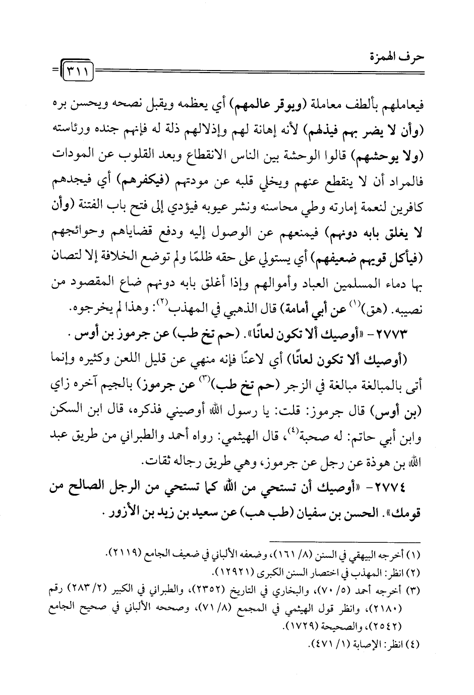 2773 - "أوصيك ألا تكون لعانًا". (حم تخ طب) عن جرموز بن أوس.