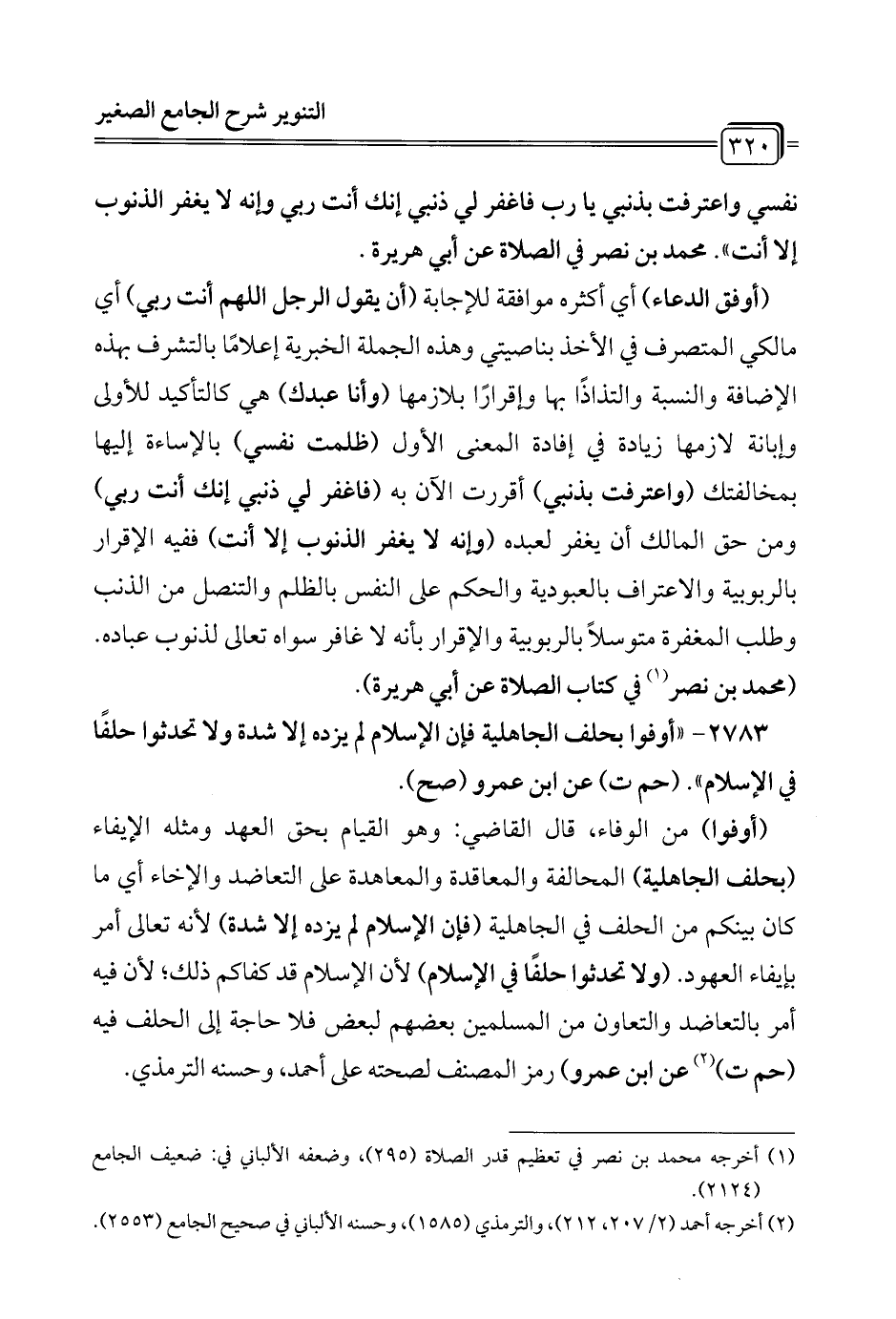 2783 - "أوفوا بحلف الجاهلية فإن الإِسلام لم يزده إلا شدة ولا تحدثوا حلفًا في الإِسلام". (حم ت) عن ابن عمرو (صح).