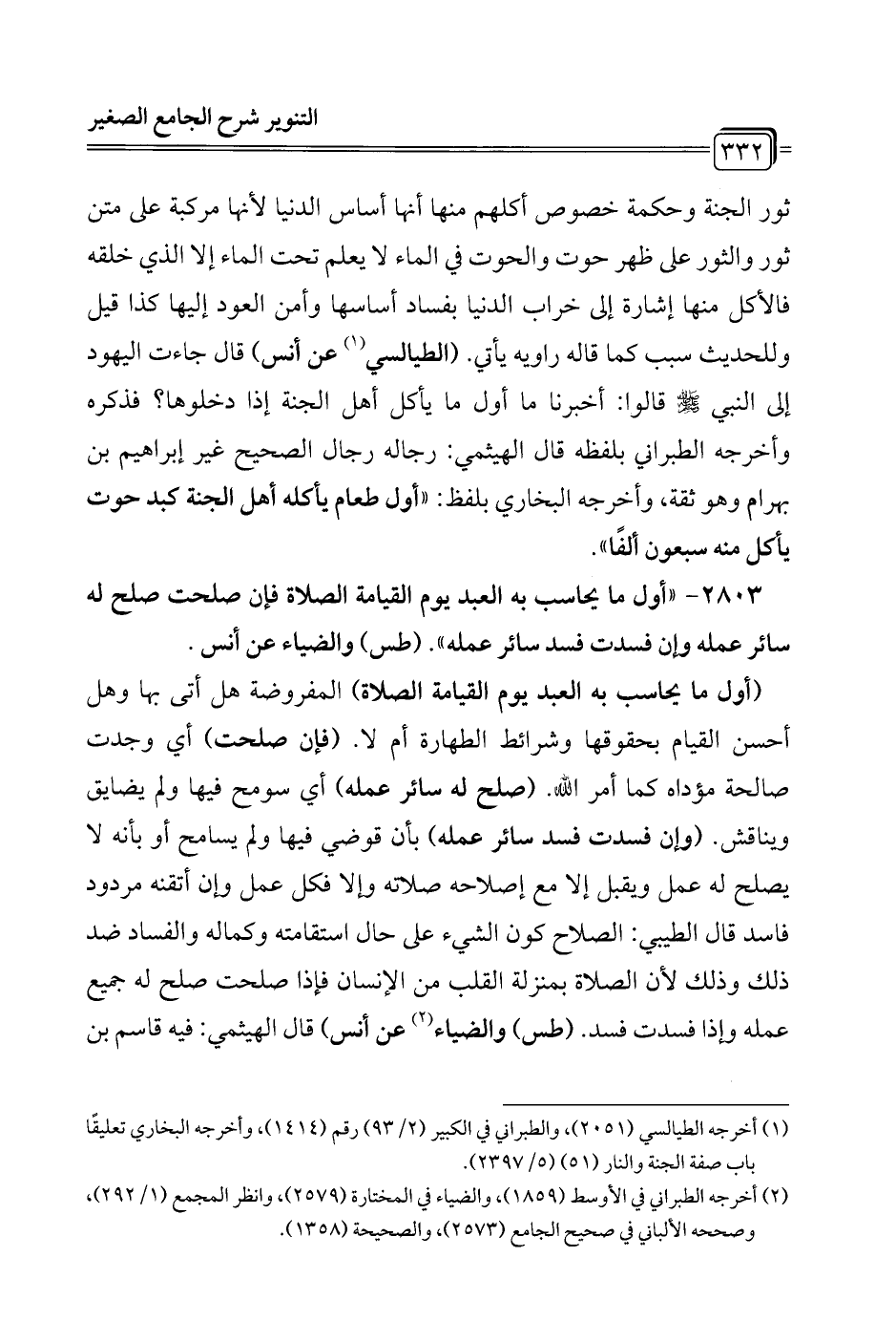 2803 - "أول ما يحاسب به العبد يوم القيامة الصلاة فإن صلحت صلح له سائر عمله وإن فسدت فسد سائر عمله". (طس) والضياء عن أنس.