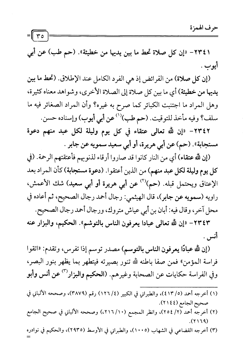 2341 - "إن كل صلاة تحط ما بين يديها من خطيئة". (حم طب) عن أبي أيوب.