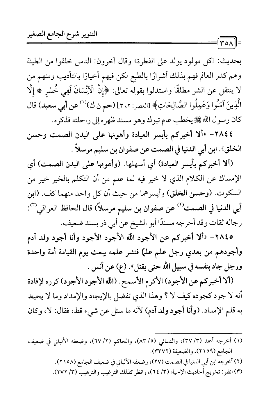 (¬2) أخرجه ابن أبي الدنيا في الصمت (27)، وضعفه الألباني في ضعيف الجامع (2158).