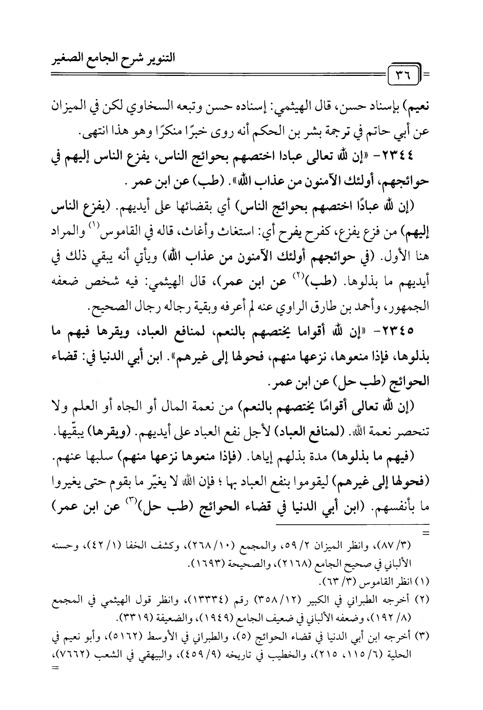 2344 - "إن لله تعالى عبادا اختصهم بحوائج الناس، يفزع الناس إليهم في حوائجهم، أولئك الآمنون من عذاب الله". (طب) عن ابن عمر.