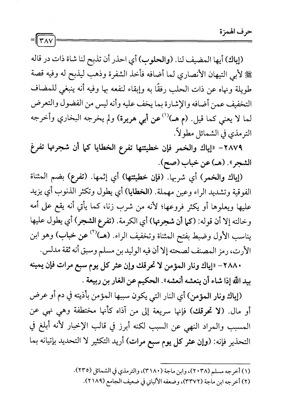 2880 - "إياك ونار المؤمن لا تحرقك وإن عثر كل يوم سبع مرات فإن يمينه بيد الله إذا شاء أن ينعشه أنعشه". الحكيم عن الغار بن ربيعة.