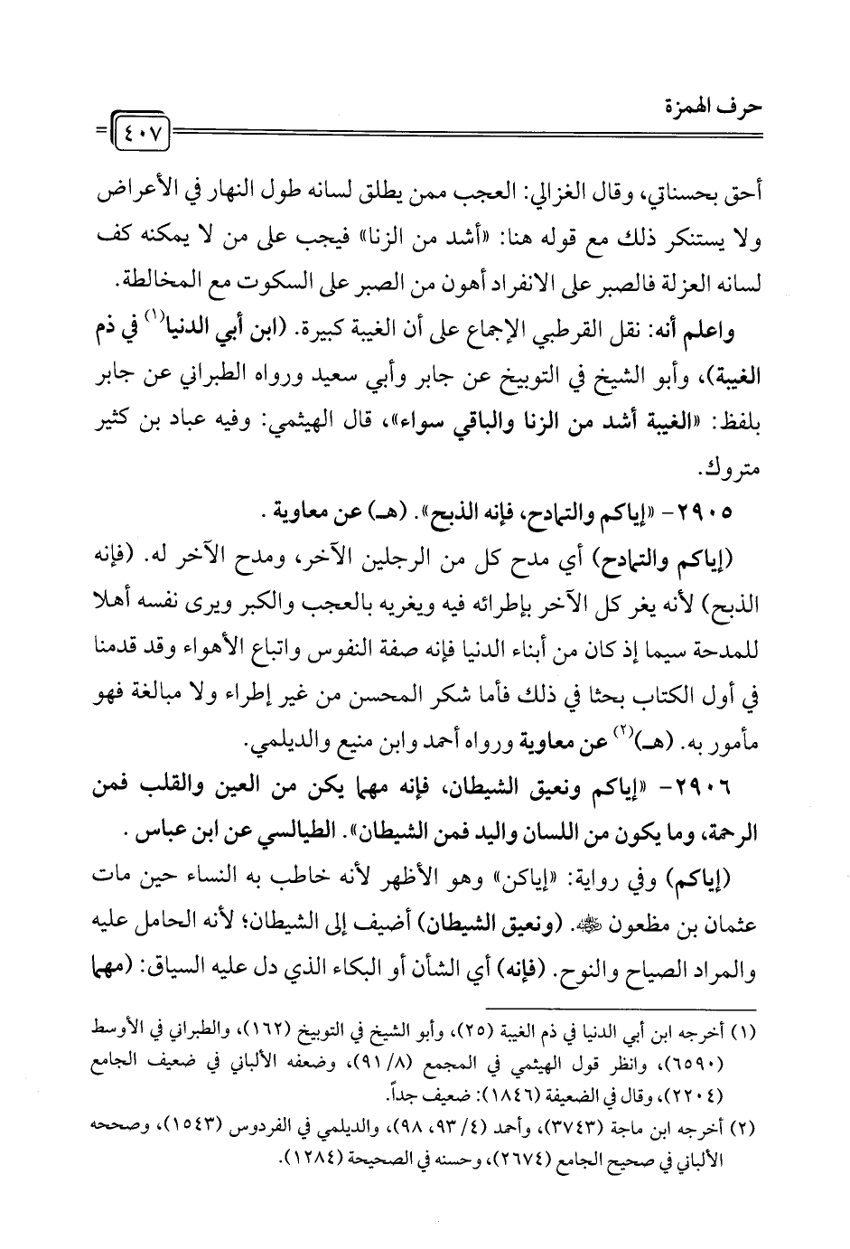 2905 - "إياكم والتمادح، فإنه الذبح". (هـ) عن معاوية.