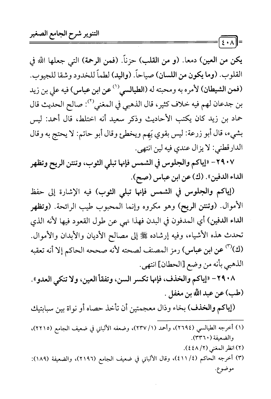 2907 - "إياكم والجلوس في الشمس فإنها تبلي الثوب، وتنتن الريح وتظهر الداء الدفين". (ك) عن ابن عباس (صح).