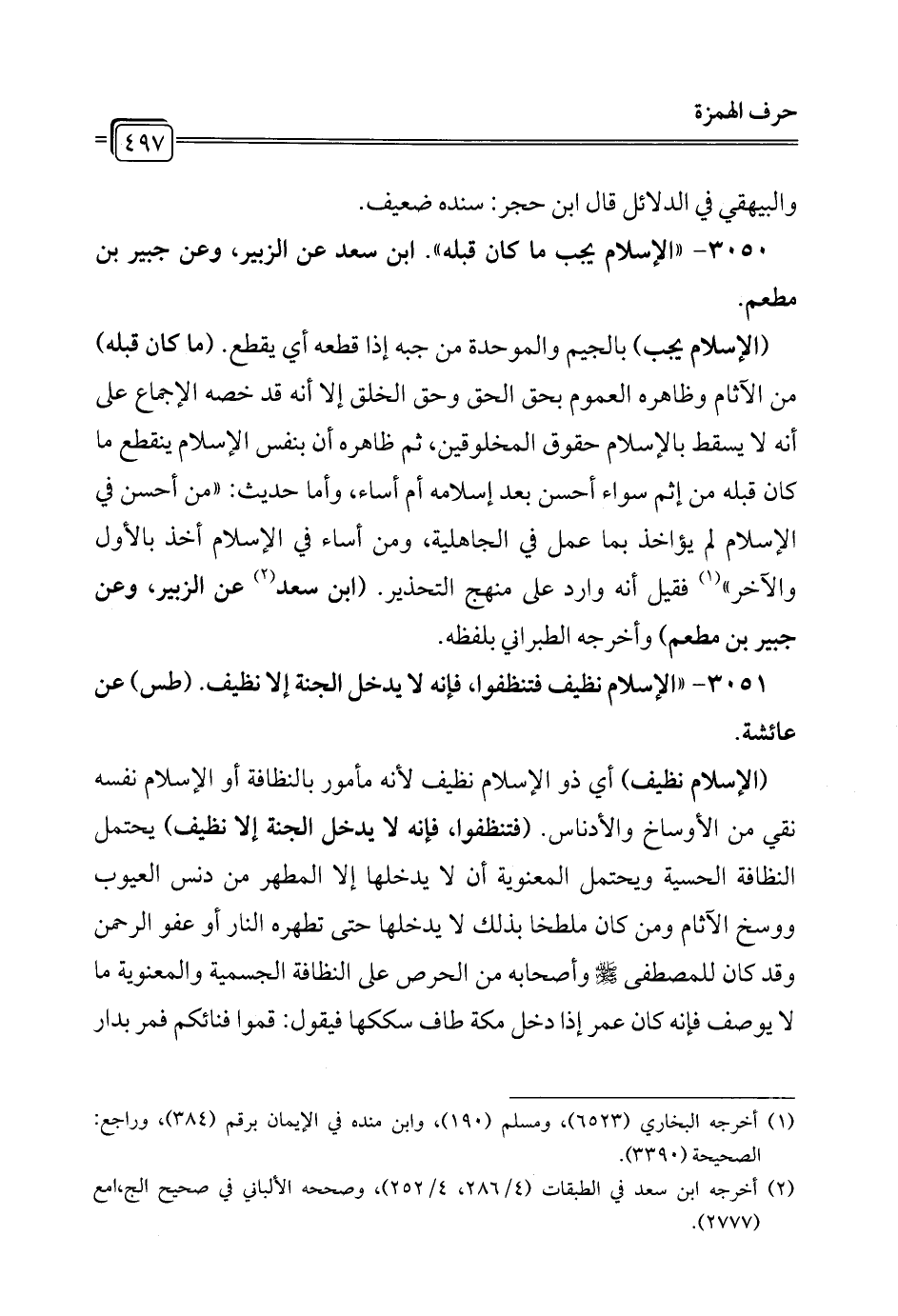 3050 - "الإِسلام يجب ما كان قبله". ابن سعد عن الزبير، وعن جبير بن مطعم.