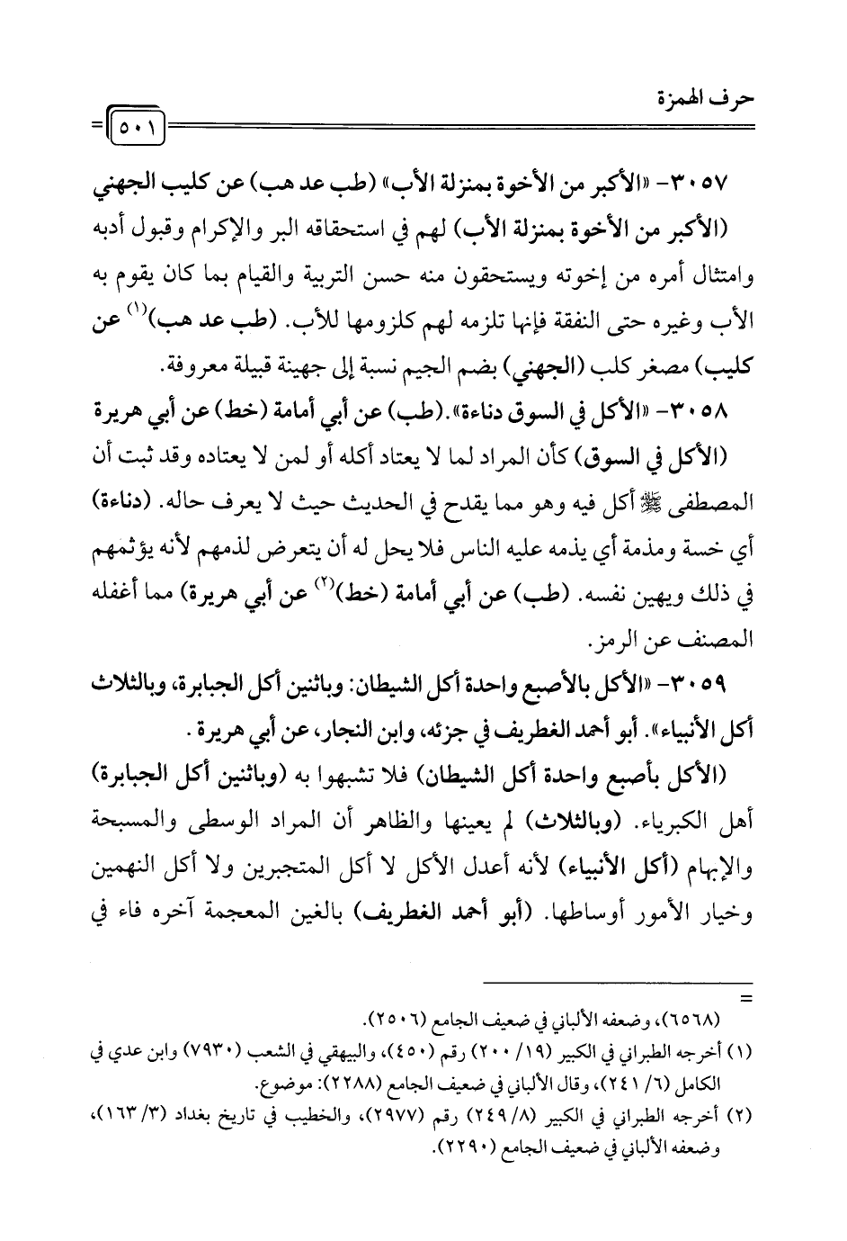 3057 - "الأكبر من الأخوة بمنزلة الأب" (طب عد هب) عن كليب الجهني (الأكبر من الأخوة بمنزلة الأب) لهم في استحقاقه البر والإكرام وقبول أدبه وامتثال أمره من إخوته ويستحقون منه حسن التربية والقيام بما كان يقوم به الأب وغيره حتى النفقة فإنها تلزمه لهم كلزومها للأب. (طب عد هب) (¬1) عن كليب) مصغر كلب (الجهني) بضم الجيم نسبة إلى جهينة قبيلة معروفة.