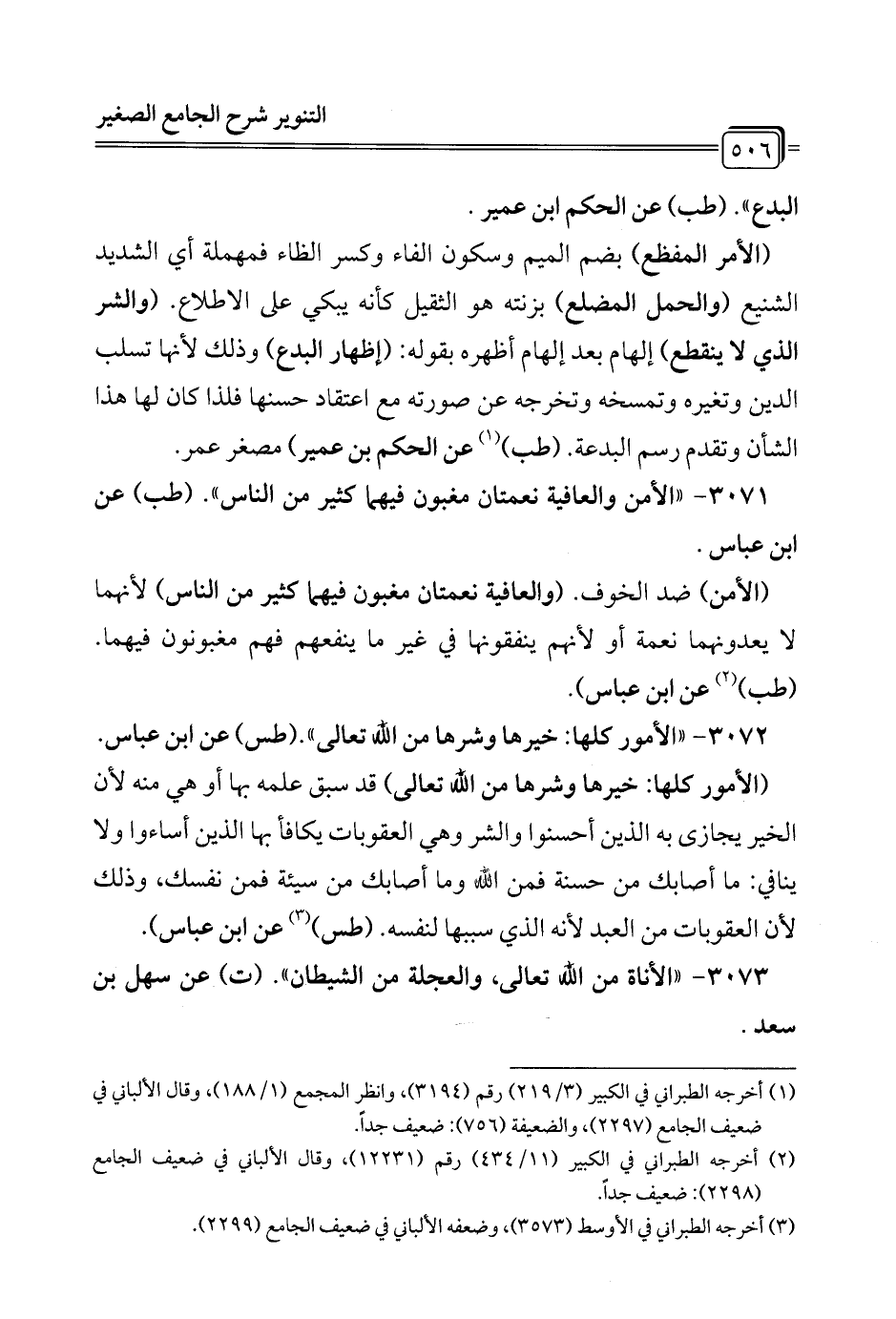 (¬3) أخرجه الطبراني في الأوسط (3573)، وضعفه الألباني في ضعيف الجامع (2299).
