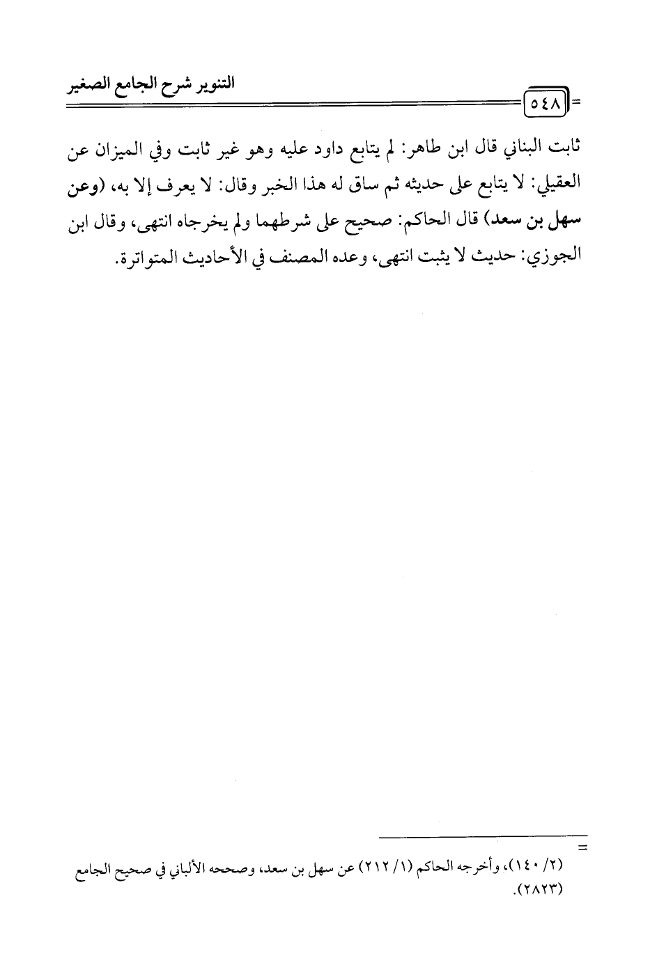 ثابت البناني قال ابن طاهر: لم يتابع داود عليه وهو غير ثابت وفي الميزان عن العقيلي: لا يتابع على حديثه ثم ساق له هذا الخبر وقال: لا يعرف إلا به، (وعن سهل بن سعد) قال الحاكم: صحيح على شرطهما ولم يخرجاه انتهى، وقال ابن الجوزي: حديث لا يثبت انتهى، وعده المصنف في الأحاديث المتواترة.