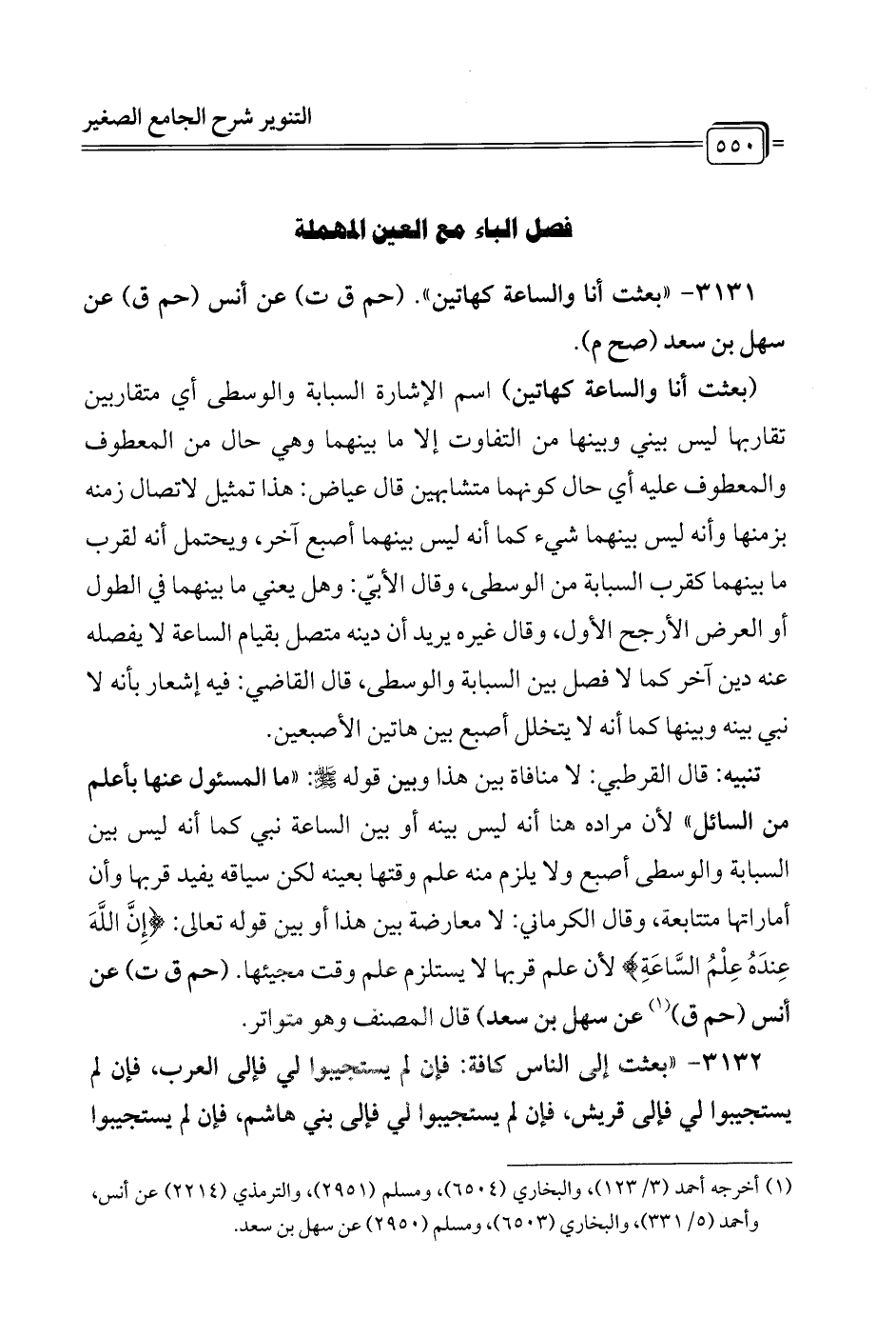3131 - " بعثت أنا والساعة كهاتين". (حم ق ت) عن أنس (حم ق) عن سهل بن سعد (صح م).