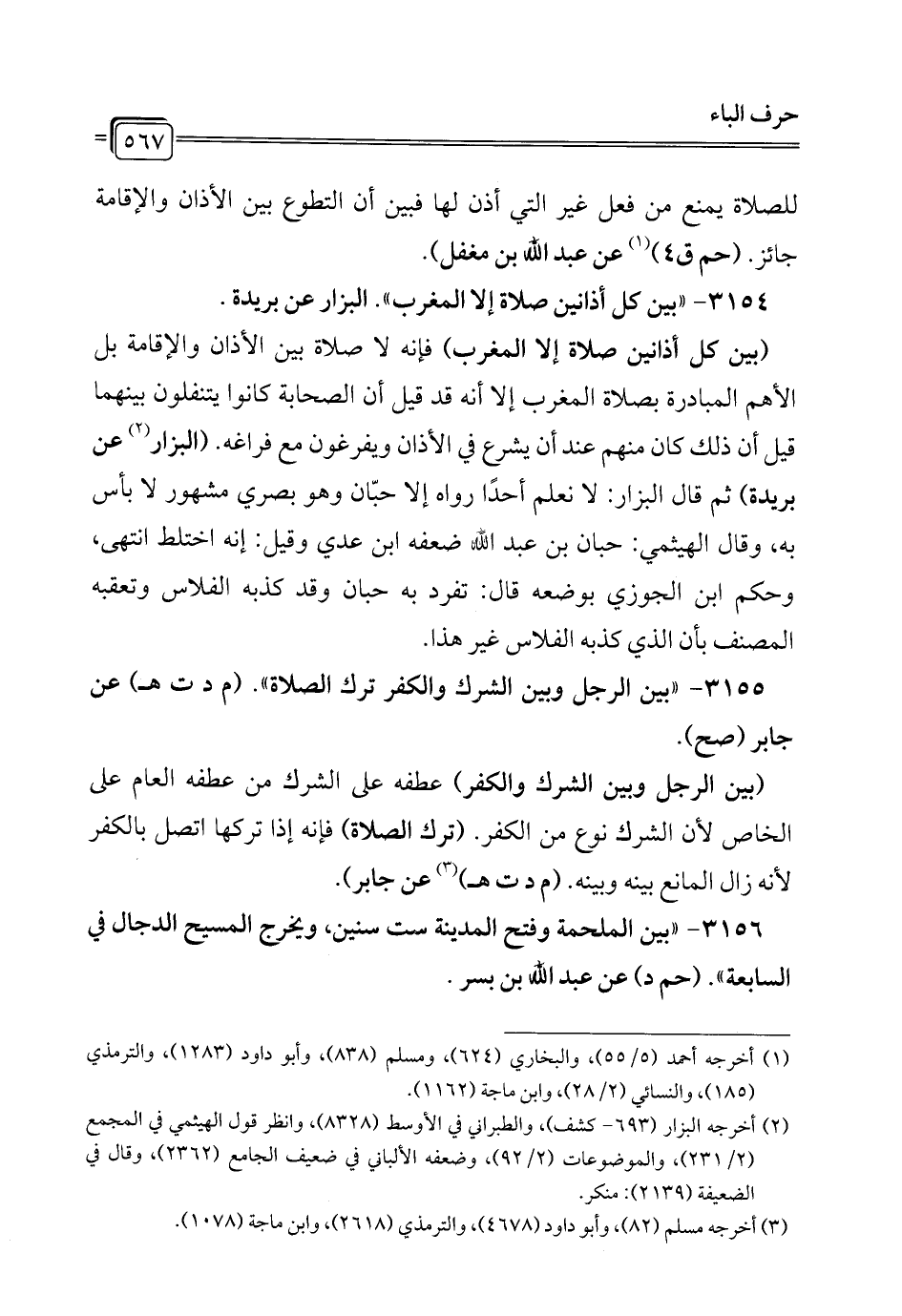 3154 - "بين كل أذانين صلاة إلا المغرب". البزار عن بريدة.
