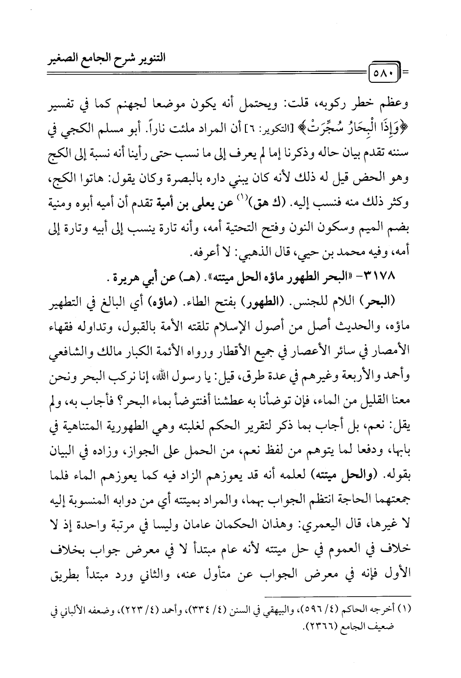 3178 - "البحر الطهور ماؤه الحل ميتته". (هـ) عن أبي هريرة.