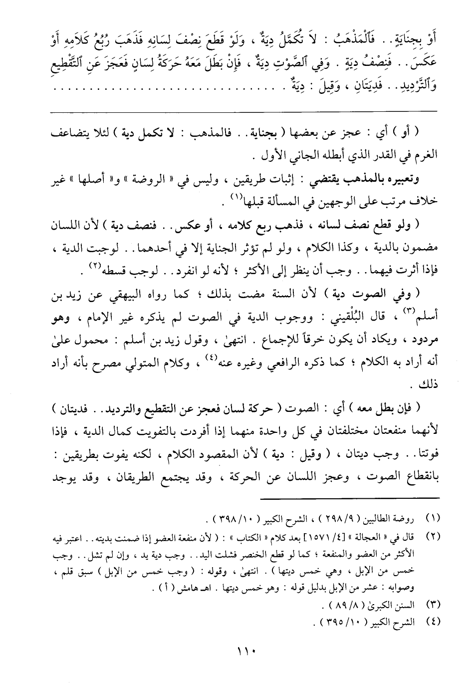 (٢) قال في "العجالة" [٤/ ١٥٧١] بعد كلام "الكتاب": (لأن منفعة العضو إذا ضمنت بديته .. اعتبر فيه الأكثر من العضو والمنفعة؛ كما لو قطع الخنصر فشلت اليد .. وجب دية يد، وإن لم تشل .. وجب خمس من الإبل، وهي خمس ديتها). انتهى، وقوله: (وجب خمس من الإبل) سبق قلم، وصوابه: عشر من الإبل بدليل قوله: وهو خمس ديتها. اهـ هامش (أ).