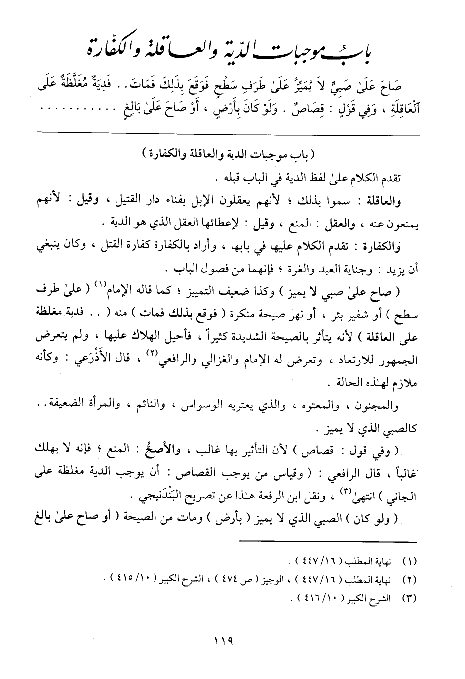 (٢) نهاية المطلب (١٦/ ٤٤٧)، الوجيز (ص ٤٧٤)، الشرح الكبير (١٠/ ٤١٥).