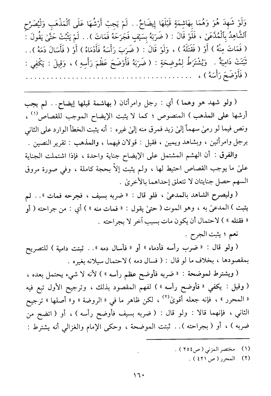 (ويشترط لموضحة: "ضربه فأوضح عظم رأسه") لأنه لا شيء يحتمل بعده، (وقيل: يكفي "فأوضح رأسه") لفهم المقصود بذلك، وترجيح الأول تبع فيه "المحرر"، فإنه جعله أقوى (٢)، لكن ظاهر ما في "الروضة" و"أصلها" ترجيح الثاني، فإنهما قالا: ولو قال: (ضربه بسيف فأوضح رأسه)، أو (اتضح من ضربه)، أو (بجراحته) .. ثبتت الموضحة، وحكى الإمام والغزالي أنه يشترط: