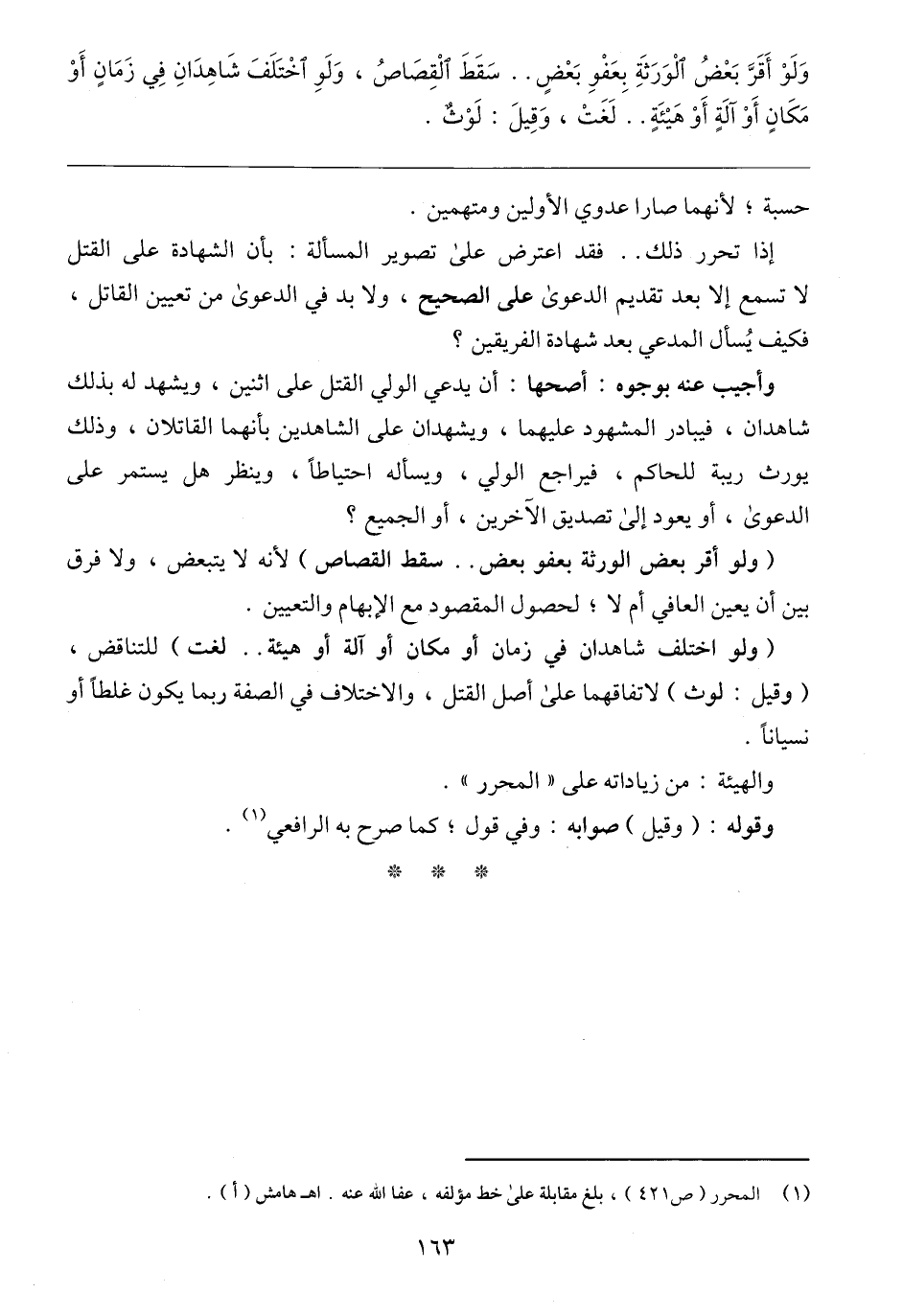 (١) المحرر (ص ٤٢١)، بلغ مقابلة على خط مؤلفه، عفا الله عنه. اهـ هامش (أ).